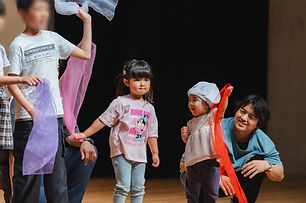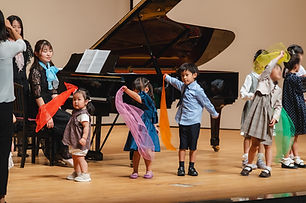 1歳児~小学校高学年までの幅広い年齢層の子どもたちが集まり、ステージ上でリトミック!